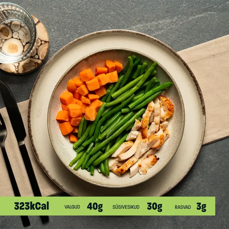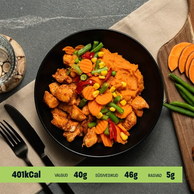 Toitaineterikas toidukord, mis hoiab sind tegusana. Kalorite ja makrode järgi paigas ports, et toetada kaalulangust ja energiat.